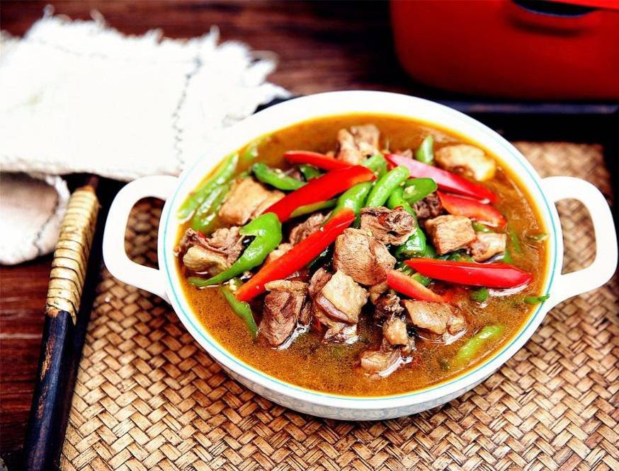 Gà om ớt cay, với độ mềm vừa chín tới cho thịt gà cùng ớt xanh và ớt chuông cay cay. Các mẹ nên chuẩn bị thêm nhiều cơm bởi món này sẽ khiến cả nhà vét hết nồi. Món này để cánh mày rây nhâm nhi cùng vài ly rượu cũng rất hợp lý. Đảm bảo các anh sẽ say quên lối về luôn mà thôi.