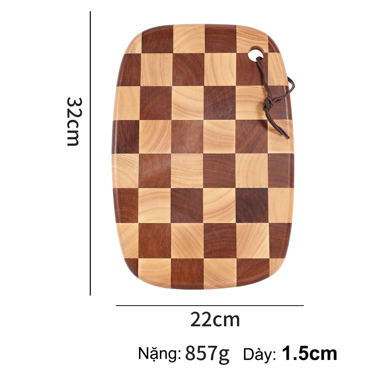 - Tên sản phẩm: Thớt Gỗ Bàn Cờ Ghép Gỗ Cao Su và Gỗ Đen