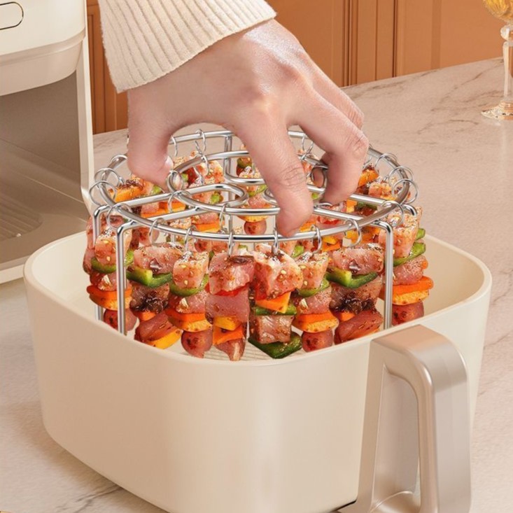 Bạn yêu thích các món nướng xiên như thịt nướng, hải sản nướng, rau củ nướng nhưng lại ngại việc bếp than khói bụi, dầu mỡ bắn tung tóe? Vỉ treo thịt xiên nướng cho nồi chiên không dầu chính là giải pháp hoàn hảo giúp bạn chế biến các món nướng thơm ngon, chuẩn vị ngay tại nhà một cách đơn giản và sạch sẽ.