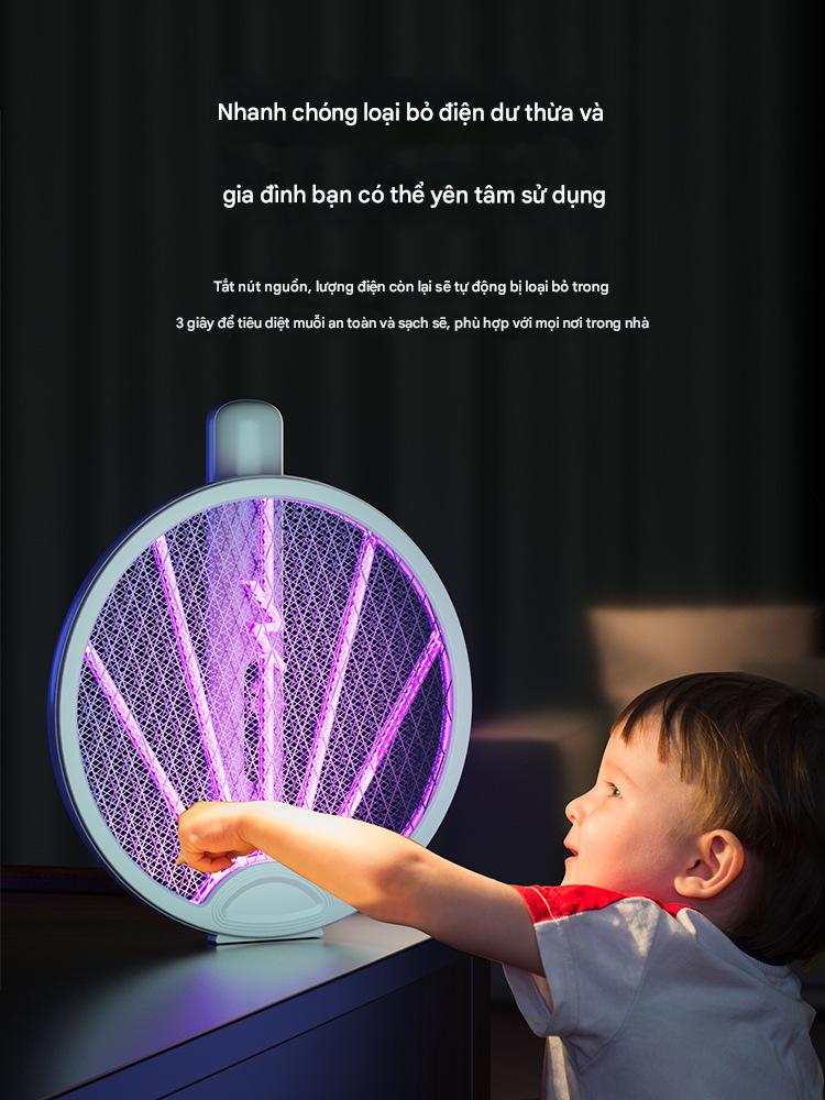 Vợt muỗi 4in1 vừa là đèn bắt muỗi, vừa là đèn ngủ, thiết kế gấp gọn tiện lợi, pin sạc siêu bền. Không mùi, không hóa chất, an toàn cho cả gia đình!