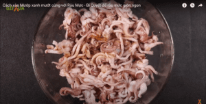 Cho vào tô râu mực 1 muỗng canh dầu hào và tiêu xay trộn đều.