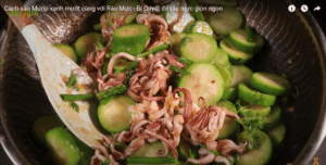 Cho dầu ăn vào chảo đun nóng rồi cho hành tỏi xay vào phi thơm sau đó cho lần lượt râu mực và mướp vào đảo đều. Nêm 1 muỗng canh hạt nêm, ½ muỗng cafe đường, 1 muỗng canh tương ớt vào tiếp tục đảo đều rồi đậy nắp chờ 1-2 phút, sau đó mở nắp ra đảo đều râu mực và mướp rồi thêm hành ngò và tắt bếp.