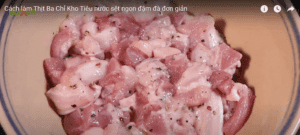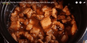 Cho thịt ba chỉ kho tiêu ra dĩa, ăn cùng cơm nóng và thưởng thức.