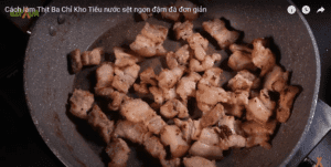 Cho thịt áp chảo vào nồi, đậy nắp kho lửa nhỏ 15-20 phút. Thỉnh thoảng mở nắp đảo đều thịt trong lúc kho, kho đến khi nước sệt vừa ý thì tắt bếp, thêm tiêu xay tùy thích.