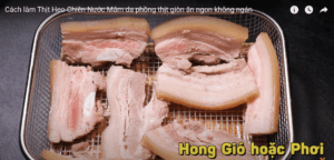 Xếp thịt heo ra rổ rá hong gió hoặc phơi cho ráo mặt da.