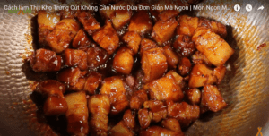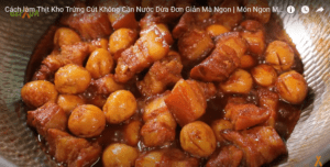 Sau khi kho thịt cho trứng cút chiên vào kho tiếp khoảng 30-35 phút cho đến khi vừa cạn nước thì tắt bếp.
