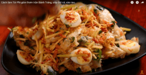 Trộn bánh tráng: Cắt nhỏ bánh tráng, rau răm, bào sợi cóc hoặc xoài cho vào tô trộn đều. Rắc muối tôm, tép khô, vắt tắc, xắt đôi trứng cút và múc tỏi phi, sa tế vào tiếp tục trộn đều. Cho bánh tráng trộn ra dĩa và thưởng thức.