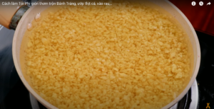 Bật bếp lửa vừa phi tỏi, phi đến khi tỏi chuyển sang màu vàng nhạt thì tắt bếp. Dầu còn nóng tỏi sẽ sậm màu và giòn hơn.