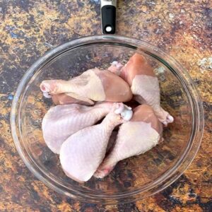Rửa đùi gà thật sạch với nước, để ráo rồi thấm khô.